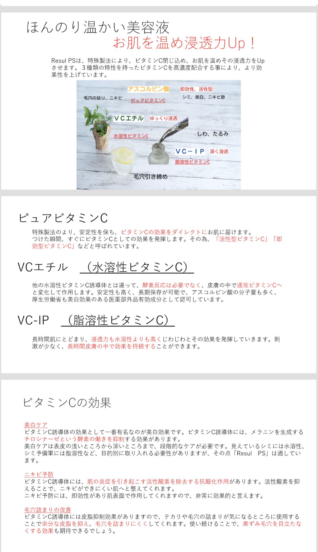 特殊製法によりビタミンCをとじ込め、お肌を温め、浸透力をアップさせます。